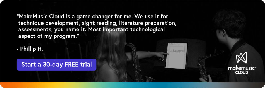 Another option is to pick a few potential spring concert or festival pieces for students to select from. Assign them in MakeMusic Cloud, and set up a digital survey that allows students to indicate which piece or pieces they would most like to play. Giving students the power to choose can really impact their level of commitment and help motivate their practice. You can easily find music from your state’s required contest list using our State Lists tool.