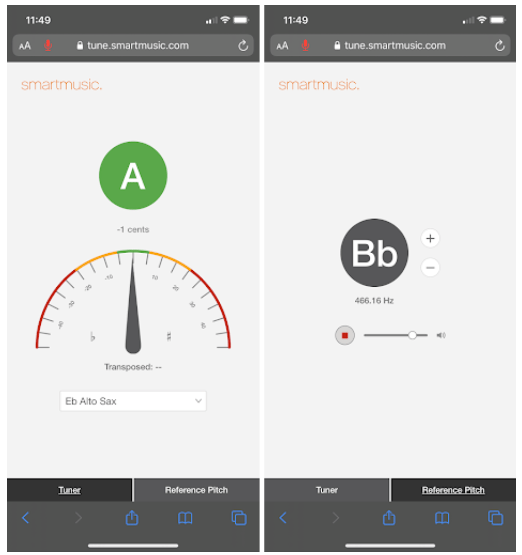The functionality is the same and to work best on a smaller screens, you can toggle between the Tuner and Reference Pitch as seen below: